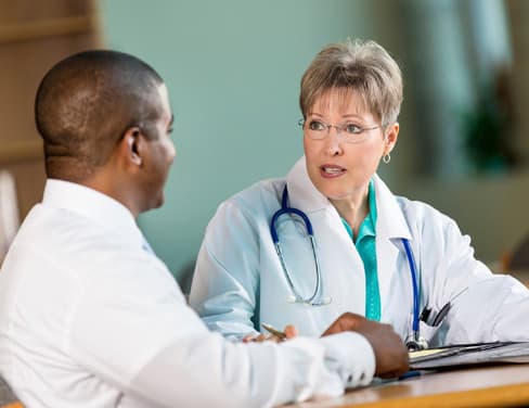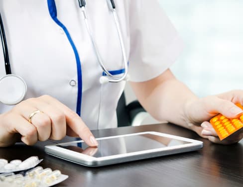 Doctor resting hands on keyboard