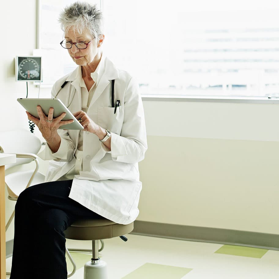 healthcare and patient information management services, doctor using tablet