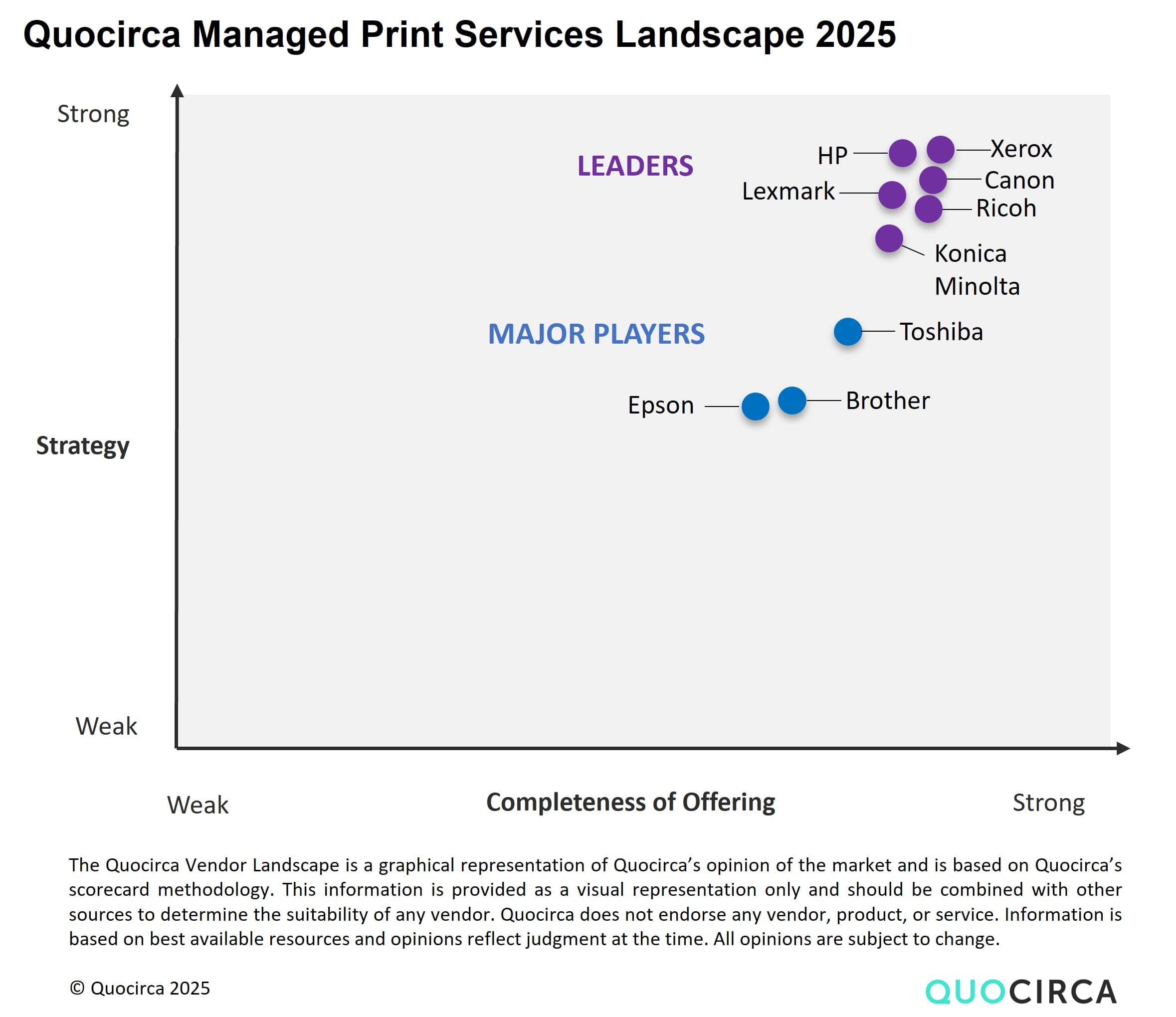 Quocirca looked at two different areas of MPS evaluation criteria: strategy and completeness of offering.
