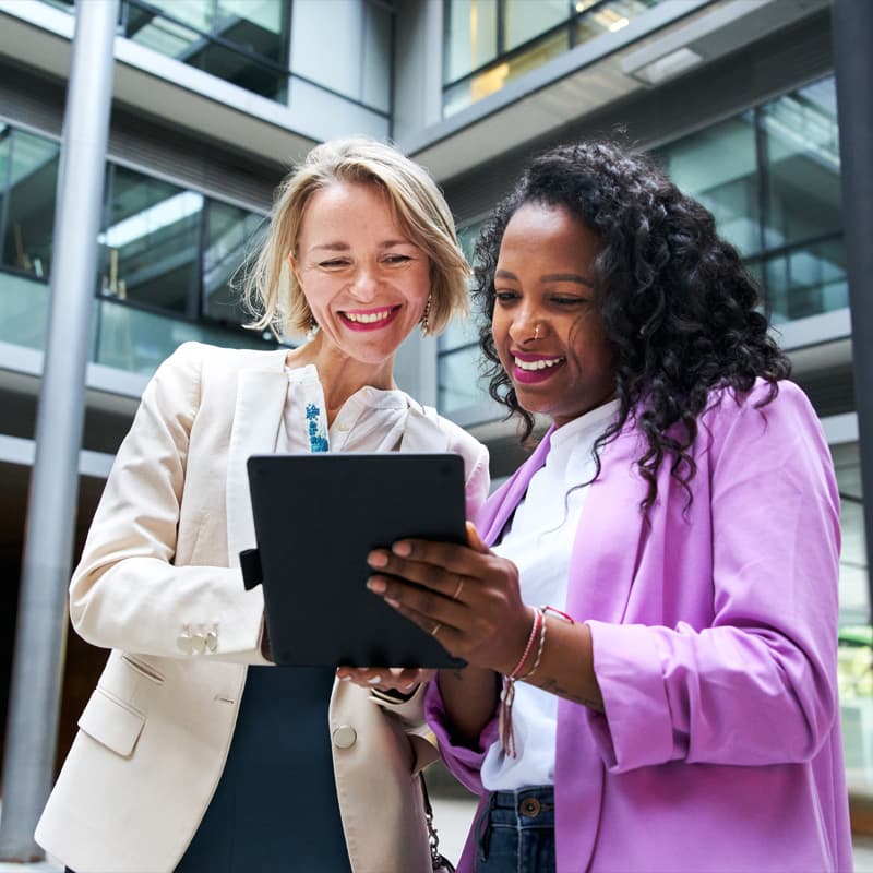 woman reviewing document on a tablet device