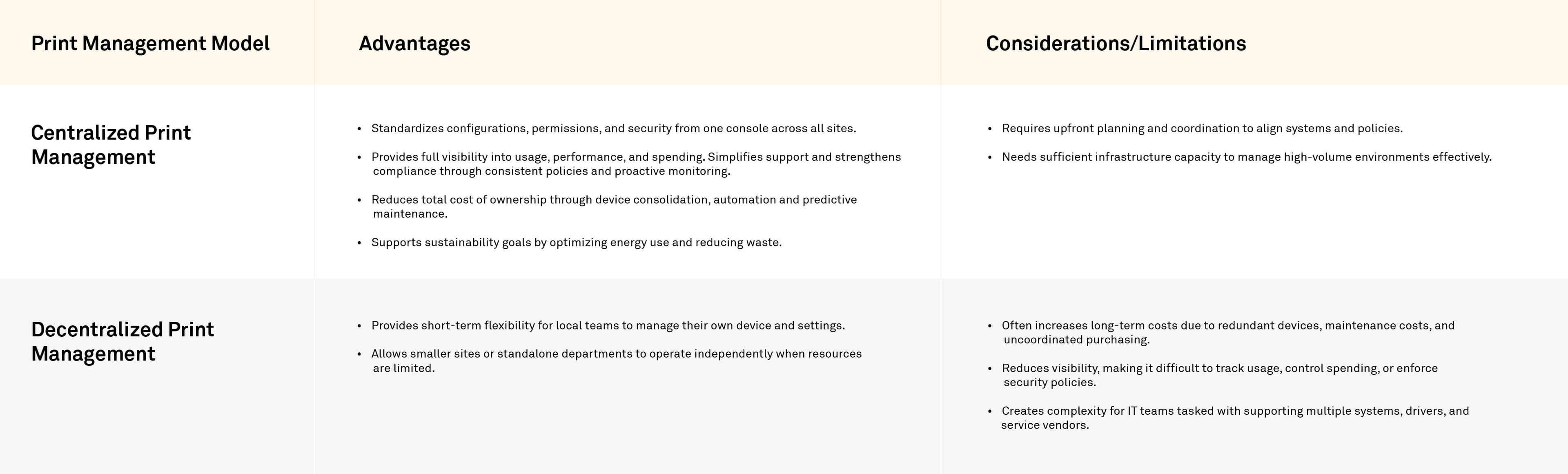 As organizations evaluate how best to manage printing, the question often shifts from "Why centralize?" to "How does it differ from what we have today?"