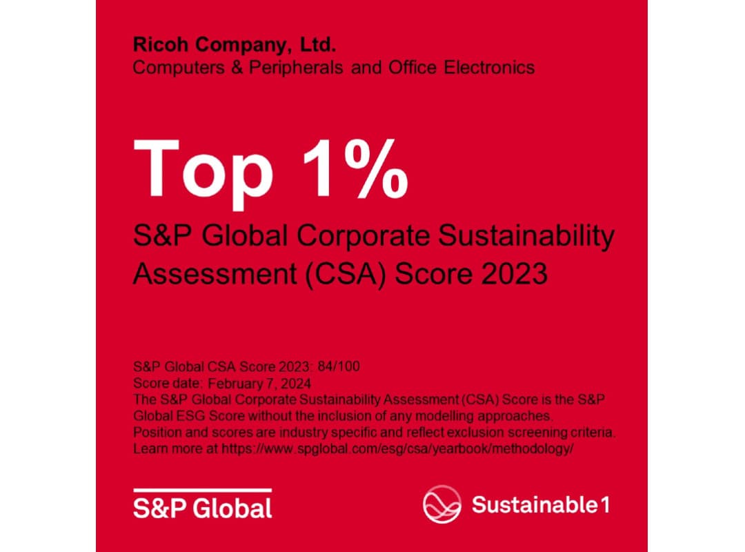 TOKYO, February 16, 2024 – Ricoh today announced it has been selected as a member of the Sustainability Yearbook 2024, with a score within the top 1%* in its industry, by S&P Global, an American company and one of the world's leaders in corporate ratings.