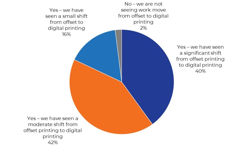 While longstanding, this debate has gained renewed relevance in today's print production landscape given the momentum building around digital. Technological advancements and improvements to speed, quality, and automation, not to mention fluctuating raw material costs, are influencing more print service providers (PSPs) to shift volumes away from offset. Research released by Keypoint Intelligence earlier this year backs this up, with 98% of PSP respondents observing a shift from offset to digital. But what underpins the business decision to choose digital over offset, or offset over digital?
